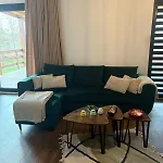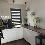 Geniet van een complete keuken in Dom Na Skarpie Appartement met een waterkoker, een koelkast en een oven voor uw gemak.